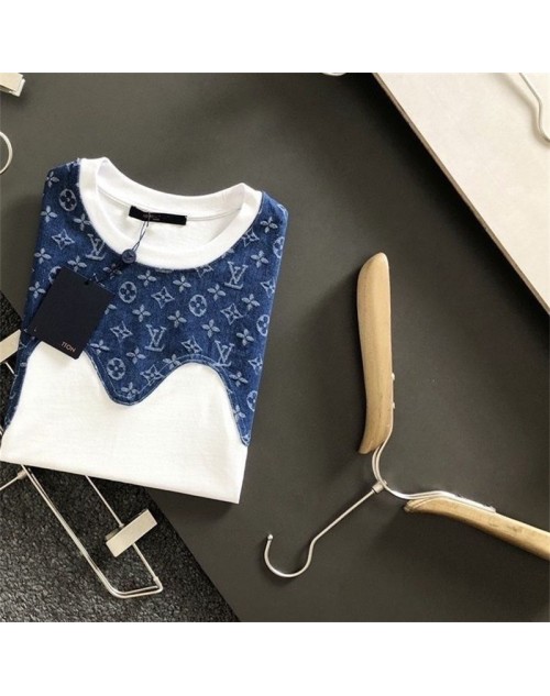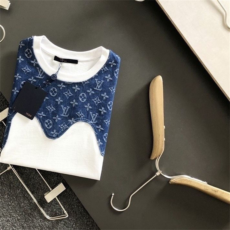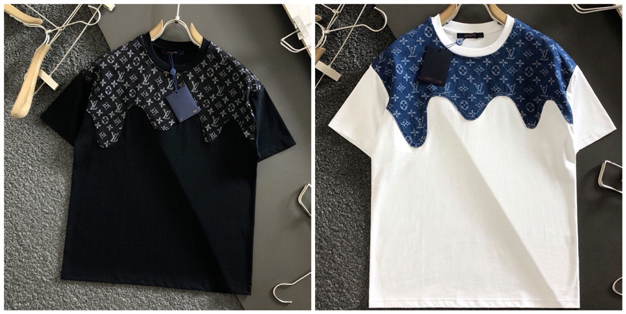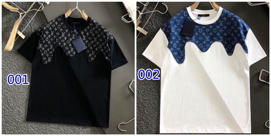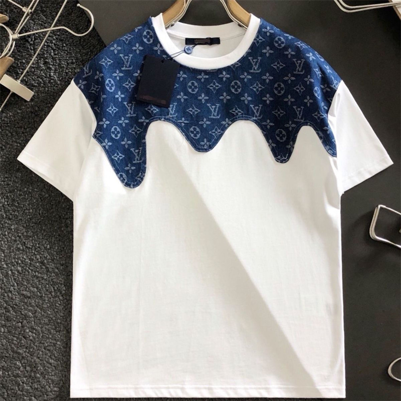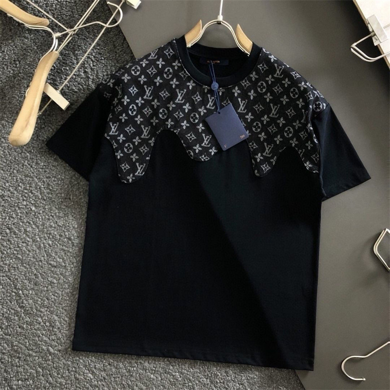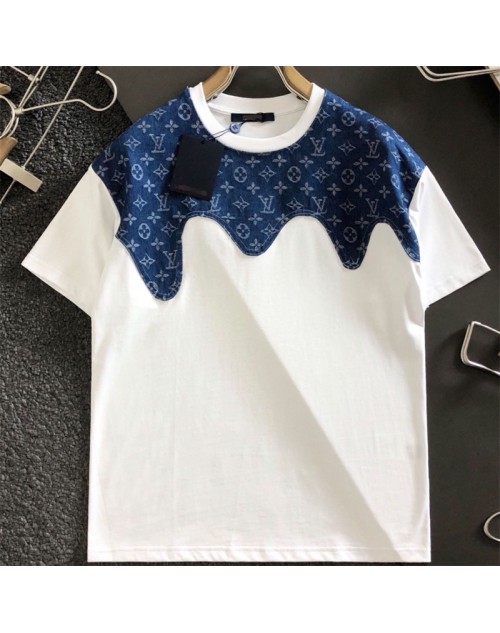 LV clothes Summer new stitching logo casual short-sleeved loose T-shirt men women